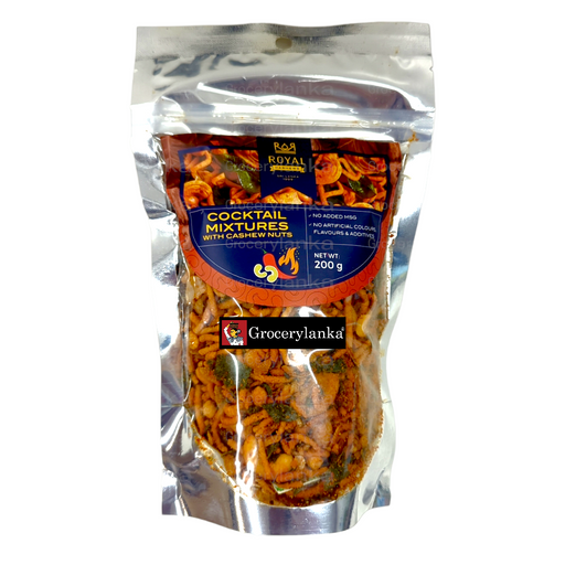 Spicy Cocktail Mixture Ingredients: Gram Flour, Vegetable Oil, Chana Dhall, Chic Peas, Rice Flour, Peanuts, Cashews, Galic, Cassava, Lentils, Curry...