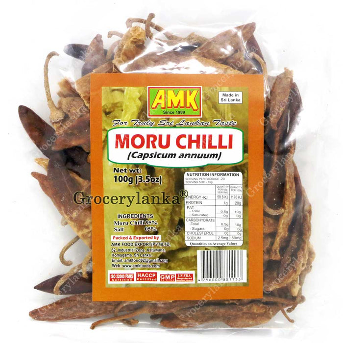 AMK Moru Chili, also known as Curd Chili, is a traditional Sri Lankan sun-dried chili soaked in creamy curd and salt before drying. This results in a uniquely tangy, spicy, and savory flavor that crisps beautifully when fried. A classic side dish served with rice, dhal, and Sri Lankan meals.