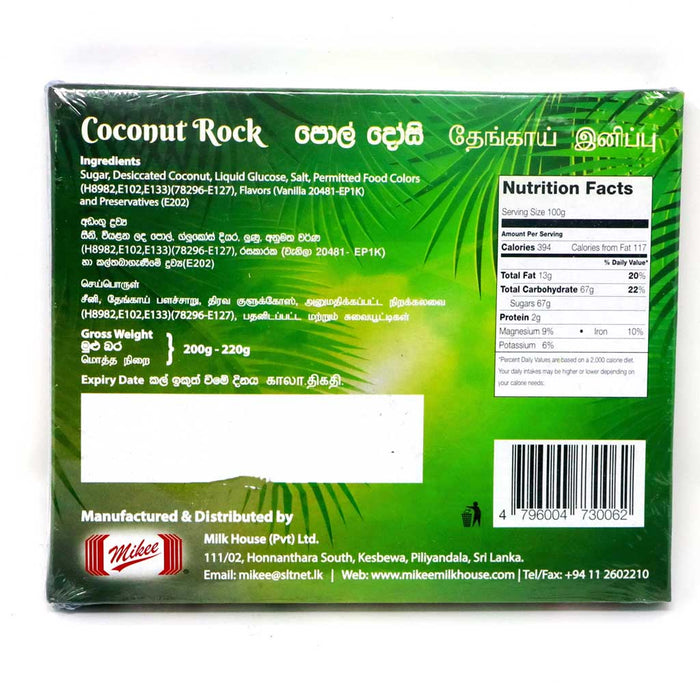 Click to expand Tap to zoom Mikee Coconut Rocks 200g (Coconut Toffee) Save 0% $5.99 1 2 3 4 5 6 7 8 9 10+ Quantity Quantity Add to cart This item is a recurring or deferred purchase. By continuing, I agree to the cancellation policy and authorize you to charge my payment method at the prices, frequency and dates listed on this page until my order is fulfilled or I cancel, if permitted. Sri Lankan Coconut Rocks ( Coconut Toffee/ Pol Dosi)